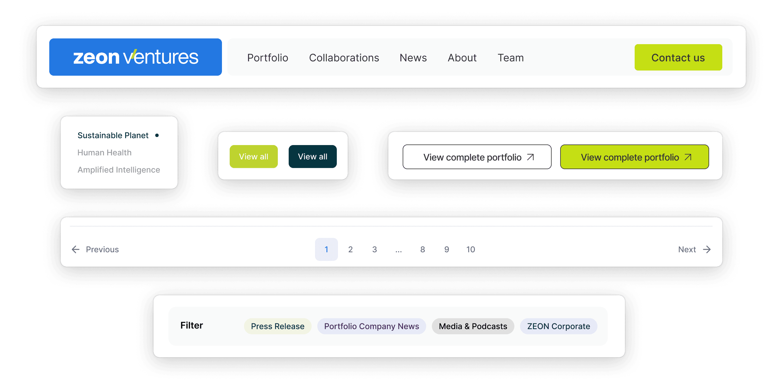 A key challenge was communicating Zeon Ventures’ different investment themes in a way that felt clear, engaging, and easy to explore.